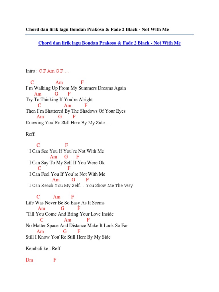 C F Am G F C Am F Im walking up from my summers dreams again. Not With Me By. Not With Me - Bondan Prakoso Fade 2 Black Kunci Gitar Not With Me - Bondan Prakoso Fade 2 Black Transpose.
